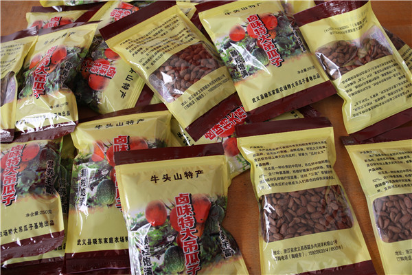 陶晓东通过“农科院+基地”运作方式,形成“人无我有,人有我优”的优势,加上随着加工技术的成熟,陶晓东卤味特大吊瓜子供不应求,销售于全国各地,成为武义特优农产品之一。自己种植的不够销售,陶晓东还从从福建等地收购同样品种的吊瓜子进行加工,近几年,每年收入达10多万元,10多年的坚守,走出了一条致富之路。