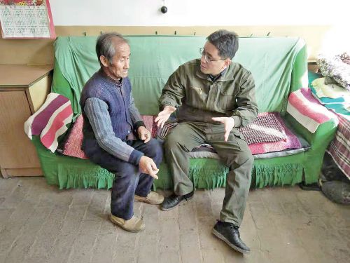 连李生与村里老党员宁保孩促膝谈心。资料图