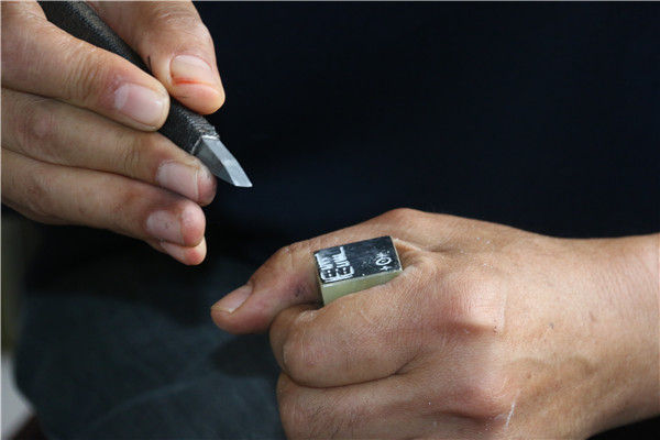 潘宏伟说,篆刻的内容结构笔划直接影响印面效果,笔划太多太少都不好安排。每刻一个章都要像写文章一样要先构思,想好了才能下刀。有时候半天刻不出一个令自己满意的作品,他就会去爬爬山,有时灵感来了,得赶紧拿起刀。最大的一次压力是,有个顾客拿来一方2.3万元的一枚石头,怕刻得不完美,构思了3天才动手下刀。