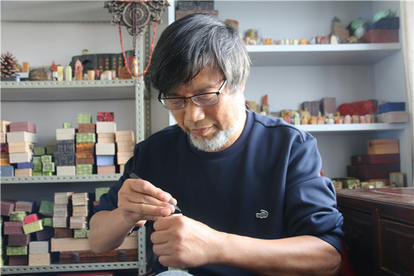 自从爱上了书法篆刻,潘宏伟就别无所好,一门心事都放在书法篆刻上。他不在乎结果,只享受过程,自娱自乐,出了一件自己满意的作品,能自乐好几天。虽然是业余爱好,但近年来潘宏伟所刻的印章可能不少于一些专业篆刻家。今年潘宏伟索性关掉了小超市,痴迷于篆刻事业。