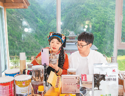 “欢迎来到我的直播间,我在四川省阿坝藏族羌族自治州小金县四姑娘山双桥村。这是小金特产松茸,这是野生的羊肚菌……”6月24日,像往常一样,何瑜娟架起一部手机,开始了她的网络带货。与此同时,阿娟团队的其他成员在户外开始了同步网络直播,向网友推介家乡的虫草、牦牛肉、苹果、松茸等。