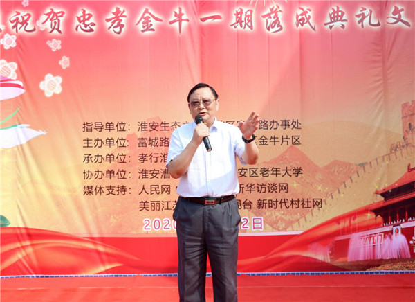 活动由运南社区党支部书记王国松主持。“党建引领社区治理共同体新模式”创始人、淮安区委书记党建项目顾问、“忠孝金牛”主题文化村项目总设计师金志庚、中国作家协会会员、中国报告文学学会理事郑旺盛、新时代村社网总编、“忠孝金牛”主题文化村项目总策划王爱兵,淮安孝行淮安志愿者协会执行会长张顺,淮安运河书画院院长蔡国华,《金牛墩赋》作者赵庆生,《金牛墩赋》书写者宋玉新、方照理,《金牛高冈图》创作者陈振华,《革命烈士王干银》画像作者翟立中,金牛村党支部书记陈留刚带领村两委及党群代表及志愿者300余人参加。
