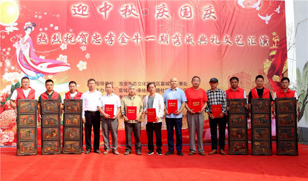 下午2:00——5:00,迎中秋、庆国庆、庆丰收、庆淮安首家主题文化村“忠孝金牛”在金牛正式诞生。淮安区老年大学艺术团、淮安区漕运艺术团的艺术家们呈现了一台精彩换轮的节目。