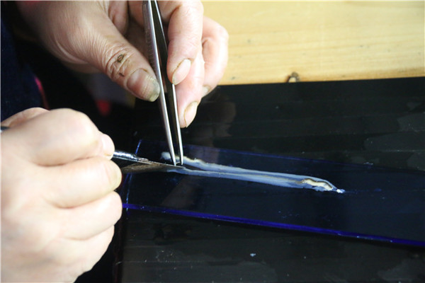 “插片”的场地是一个昏暗的小屋,一张小方桌,一个“开片”工,两个“插片”师傅正在紧张有序地进行“插片”工作。地上是几盆正待手术的珍珠蚌。一位姓郑的“插片”师傅说,她们来自安徽,她做这个行业已经有18年了,在金华“插片”也已经多年,时间久了说得一口地道的金华话。郑师傅说,她一天工作12个小时,能插400只左右的珍珠蚌,并且手术后的珍珠蚌极少有死的,因此深受珍珠蚌养殖户的欢迎,时间一到,就会邀请她们来“插片”。