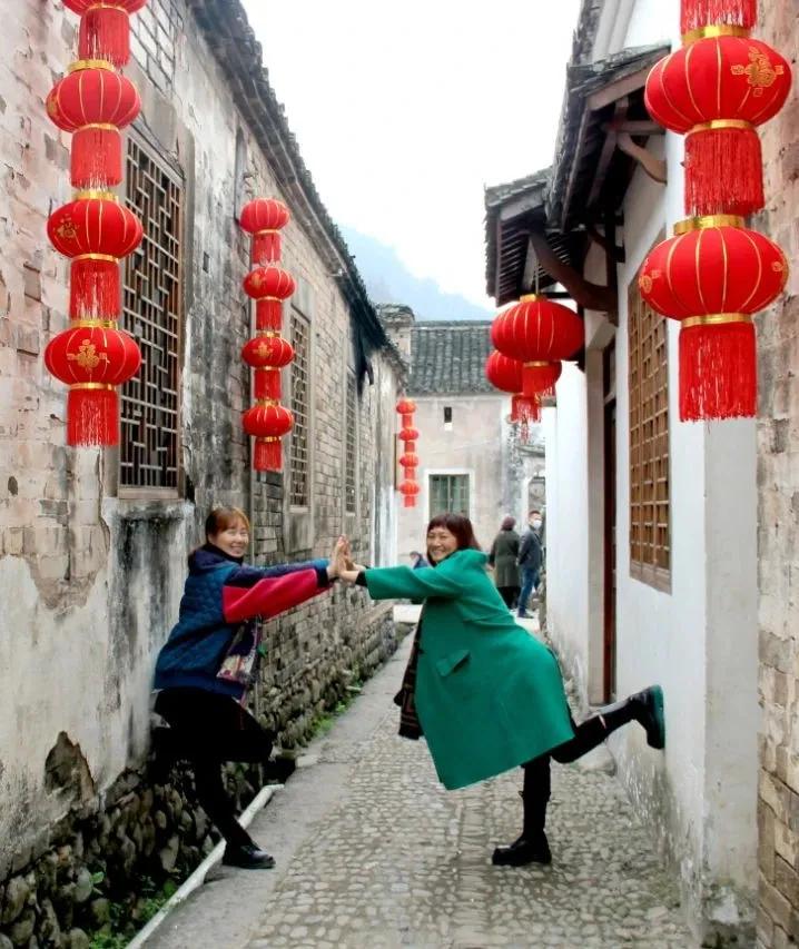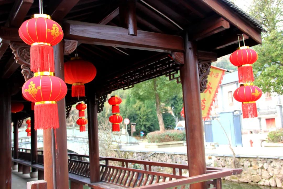 在俞源随处可以看到过年的气息,无论是村口的售票中心的横梁挂件,还是屋檐小巷的大红灯笼,或者是门口的喜庆春联,红彤彤的一片,年味正浓。