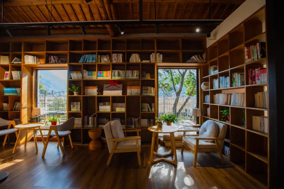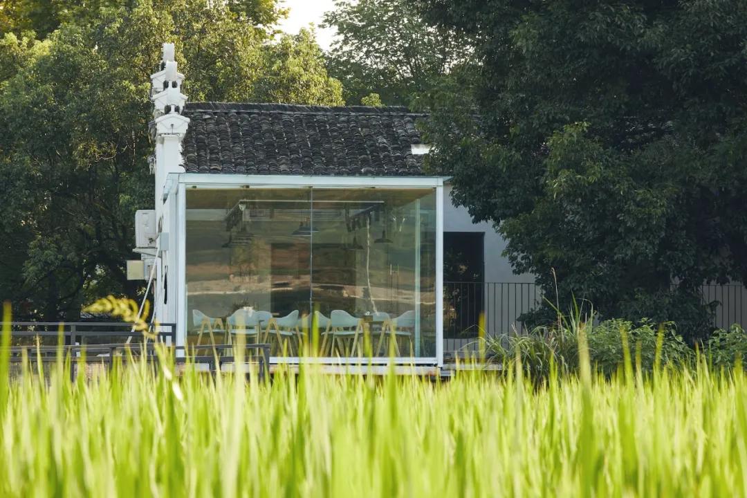 皆山书馆,坐落在古树林旁边。馆内有书籍、茶饮、咖啡、精致的下午茶点心等。书馆里的阳光房镶嵌在太极溪流上,与周边的稻田、远处的山峰一起描绘成了美丽的画卷,是俞源景区的网红打卡点之一。一束束温暖的阳光洒落进房子里,让您享受穿梭在乡村里雅致的生活。