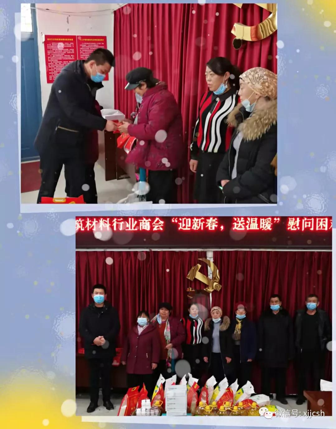 不忘初心使命,牢记社会责任。在农历虎年春节即将到来之际,新疆建筑材料行业商会理事会一班人在党支部书记高虹带领下,驱车50余公里,来到乌鲁木齐市米东区三道坝镇十二户西村,开展“迎新春送温暖”活动,集中看望十二户西村、塔桥湾村14个生活困难户,访贫问困送温暖,欢乐祥和迎新春。