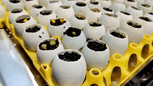 “黄金黑米蛋”,在别的饭店并不多见。其原材料选用农家土鸭蛋制成的咸鸭蛋和黑米,辅以玉米粒,甜豆,农家土香肠。先将咸鸭蛋用剪刀去壳头,洗净蛋白留蛋黄,再将准备好的主料,辅料调味好酿入鸭蛋中,上蒸笼蒸30分钟即可,一打开,满满的米香味。陈军委说,鸭蛋本身具有清肺止咳,滋阴平肝,促进食欲,黑米有延湲衰老等作用。