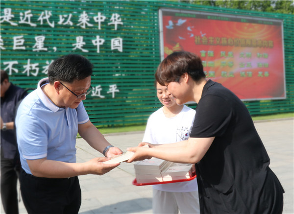 接着,在纪念馆正门口,徐苏宾带领该市十一届人大常委会副秘书长、办公厅主任冯俊,市十一届人大常委会副秘书长、研究室主任张勇,市十一届人大常委会副秘书长、人事代表工委主任陈利卿,下城区十三届人大常委会主任朱钟毅,拱墅区第六届人大常委会主任洪永跃,西湖区十四届人大常委会主任施增富,市人大常委会办公厅原副主任、研究会副秘书长彭启政,拱墅区第六届人大常委会副主任来鸣,余杭区十四届人大常委会副主任王云联,下城区人大常委会城建环保工委原主任杜荣华,余杭区人大常委会法制内司工委原调研员仰健雄,桐庐县人大常委会城建环保工委原主任姜春龙,下城区人大常委会办公室原主任王炳华,市人大常委会办公厅行政接待处调研员范青江,市人大工作研究会办公室副主任刘瑜坤等,应群带领蔡峦、江敏、胡建丽等,依序举行了《下关史话》赠书环节。(供稿:江敏 王爱兵)