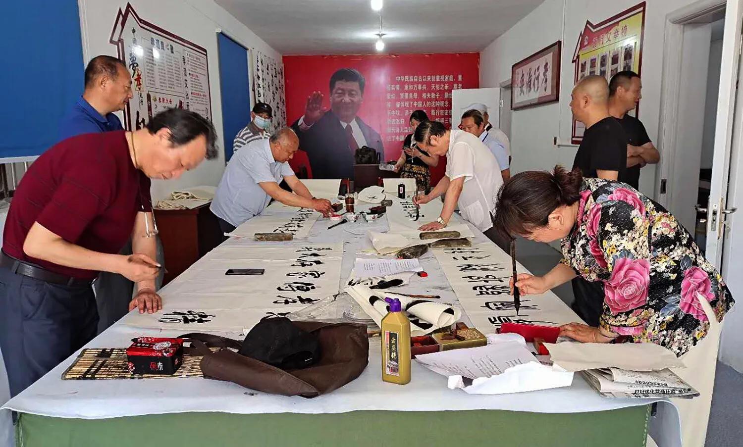 上午8:30在村部会议室,王国松致欢迎词并进一步介绍了金牛村厚重的历史文化,并就目前该村在办事处的正确领导下目前正在实施以党建为引领,以孝聚力、以文兴村战略,讲述了前几天已经分批邀请淮安区历史文化研究会会长金志庚等文史专家、赵庆生等诗词名家来到该村进行采风指导。今天邀请诸位书画家来我村采风举行笔会,是我村借船出海,请大家为我村文化发展助力,在金牛留下您们宝贵的墨宝。
