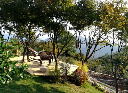 整个假期,外甥女小风都在她精心设计的“作品”里忙碌。她时而要陪同客人漫步花庭,不时帮助拍照留念,讲解一下山村古老的历史;她时而要提醒小孩子们玩耍中要慢点奔跑,在陡坡旁、泳池边她还要走上前去搀扶一把、拦挡一下;她时而置身客人群体,倾听他们对服务、环境的点评和建议;她时而又去接待前来检查和指导工作的政府人员,汇报经营情况和提出发展思路;她时而急匆匆地奔到灶房,依尊食客的饮食要求,制定可口的一日三餐计划……我感觉她不像是民宿的营业者,彷佛绿色庭院里的女主人在热情地招呼来自四面八方的亲眷。忙碌归忙碌,外甥女的内心却充满着喜悦,花园民宿就是山村里的一道靓丽景观,在中秋、国庆双节的八天试营业中,得到来客的好评。因为网络对信息的传播力度,那几天,小风要不时地接听预约电话,无奈客房全部告罄,遗憾中也让她看到了未来发展的希望。
