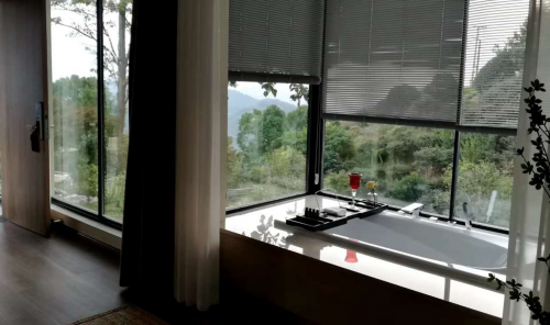 图片:躺在玻璃窗下的浴缸里观景别有风趣