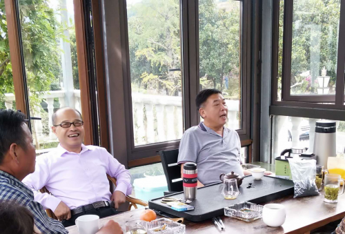 图片:作者(中)与业内人士讨论乡村民宿文化
