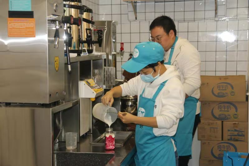 在董洪方、李亚妮的这家“季小鲜”奶吧,有芝士奶盖系列、热饮巴氏奶系列等奶茶,还有草莓、火龙果、蓝莓等自然新鲜的果奶系列,当然还有大众化的牛奶、酸奶制品等,款款满足了上至八旬老人小至幼儿的需求。