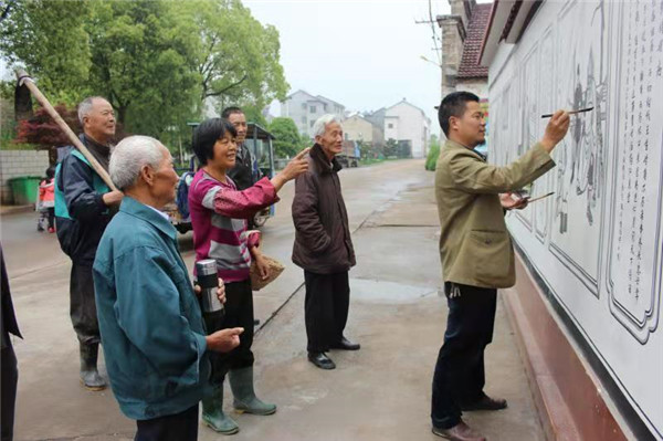 2016年,王舍安应邀在中国民主示范村后陈村养老中心绘制了中国传统二十四孝图,面积达300多平方米。因内容传达了积极向上的传统道德观念,且作品栩栩如生,深受老年人以及村民的赞扬。去年,一位该村村民碰到王舍安说:“二十四孝图深入人心,起到了很好宣扬传统道德的作用。现在村民们捉到鱼,挖到新鲜的笋都要先让长辈吃。”也是在这一年,武义古城保护中心委托王舍安为上街古城上栈房和王家厅的马头墙绘制了近400平方米的泥水画,深受专家和各界人士的好评,这让他实实在在地为武义县的古城保护出了一份力。