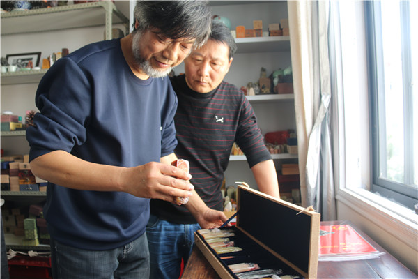 自从爱上了书法篆刻,潘宏伟就别无所好,一门心事都放在书法篆刻上。他不在乎结果,只享受过程,自娱自乐,出了一件自己满意的作品,能自乐好几天。虽然是业余爱好,但近年来潘宏伟所刻的印章可能不少于一些专业篆刻家。今年潘宏伟索性关掉了小超市,痴迷于篆刻事业。