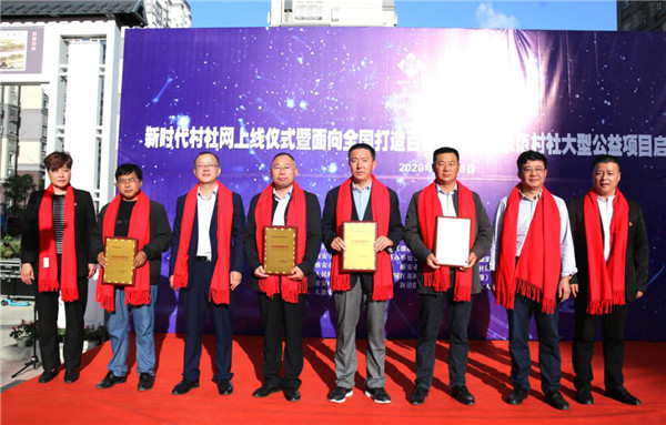 下午3:18分,金志庚、梁文龙、贾武强、张延爱、蔡峦、王爱兵、苗士荣、张瑞共同为新时代村社网揭牌。王爱兵代表新时代村社网全体同仁发表讲话:新时代村社网,是他与新媒体人苗士荣、张瑞共同创办的一个以中国乡建院为依托,以国内首个主题文化村社所在地下关村为总部永久性基地,是国内首家民间创办的精准垂直公益服务基层村社的专业网站,网站目前开设有村社头条、基层党建、美丽村社、人物访谈、新农优品、创新模式、政策要闻、智库专家、志愿联盟等栏目频道,对新时代中国村社群落作全方位、多视角、深层次的报道,展示新时期中国村社文化发展新面貌。新时代村社,始终将坚持以党建为引领,以中华优秀传统文化的精髓与新时期村社治理融合应用为导向,以国内村社崛起实战专家团队为主体实操,凝聚一批文化界的实力派志愿者,利用强大的全媒体平台矩阵,面向全国推广以金志庚为代表探索的“党建引领社区治理共同体新模式”“传统文化赋能村社新模式”,肩负着把“仁义下关”“忠孝金牛”等以民间志愿力量为主建设主题文化村社中积累的成功经验面向全国推广的使命,为新时期中国基层村社社会治理水平提升而贡献力量。