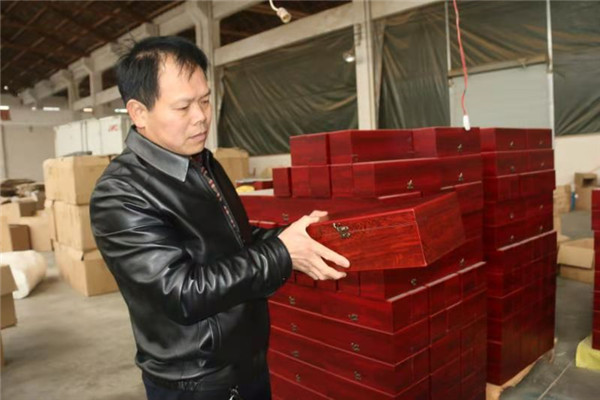 就这样大难余劫之后,陶曹伟关了已办了3年的锯板厂。在家休息了一段时间,陶曹伟又到无锡开了一年多时间的超市。后与一个亲戚的合作,办起了一家木制品加工厂,也就是现在加工厂的前身,专门加工红酒礼品箱和古币之类的收藏箱。并于2008年在老家陶村自个儿建起了一个2000平方的的厂房,一半厂房自己用于加工木制品,一半租给别人办服装加工厂。